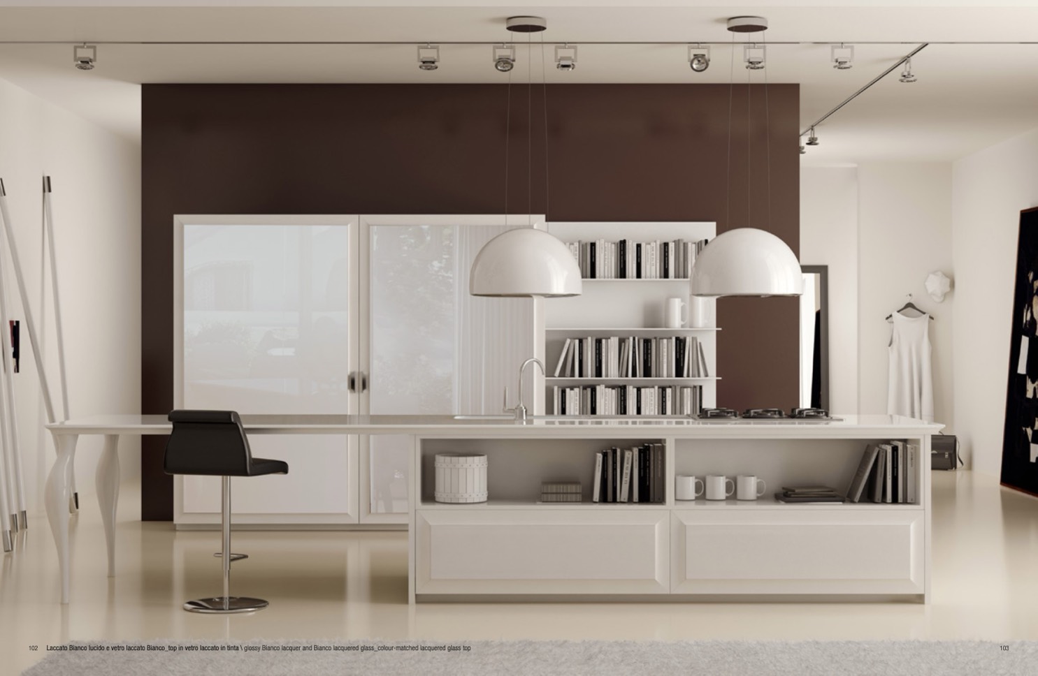 102 Laccato Bianco lucido e vetro laccato Bianco_top in vetro laccato in tinta \ glossy Bianco lacquer and Bianco lacquered glass_colour-matched lacquered glass top