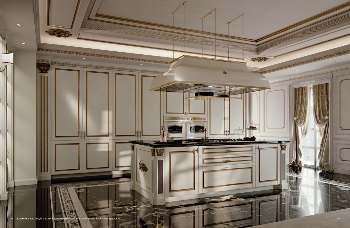 140 Laccato Crema opaco e foglia oro_marmo Brown Antique \ matte Crema lacquer and gold leaf_Brown Antique marble