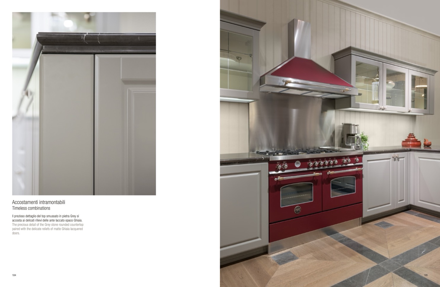 accosta ai delicati rilievi delle ante laccato opaco Ghiaia.