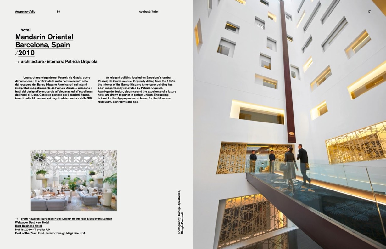 dell’hotel di lusso. Contesto perfetto per i prodotti Agape,