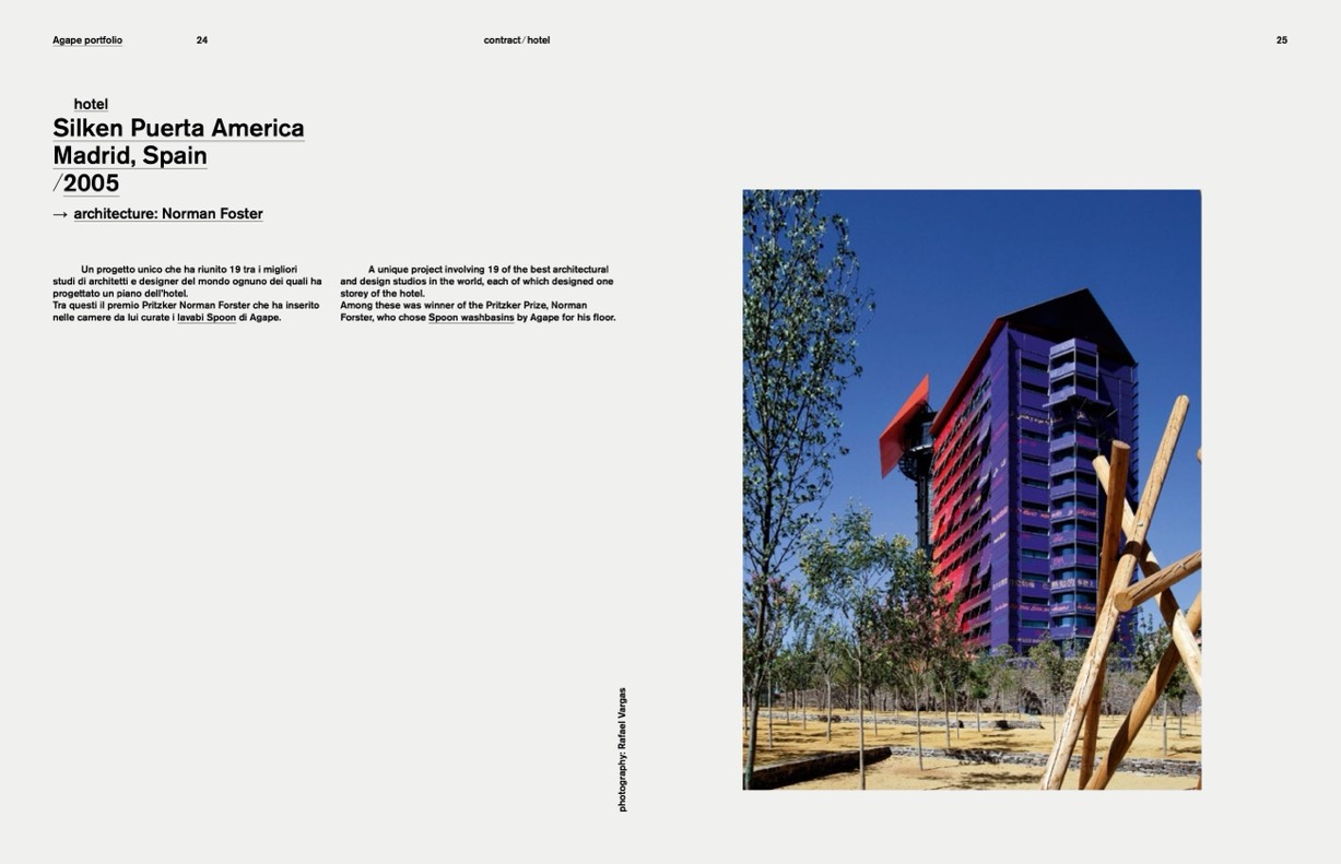 nelle camere da lui curate i lavabi Spoon di Agape.