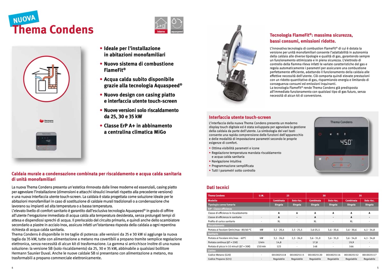 Thema Condens è disponibile in tre taglie di potenza: alle versioni da 25 e 30 kW si aggiunge la nuova
