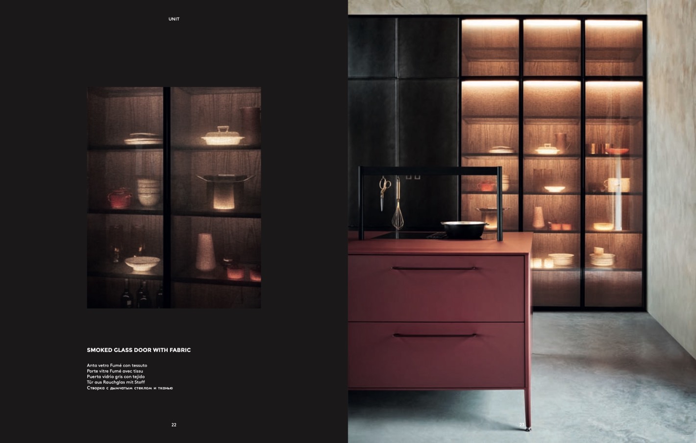 SMOKED GLASS DOOR WITH FABRIC