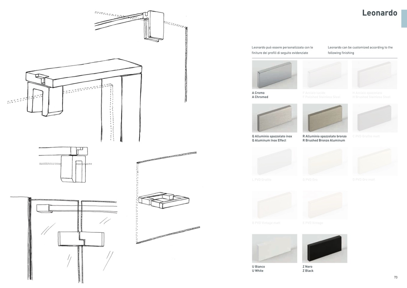 finiture dei profili di seguito evidenziate