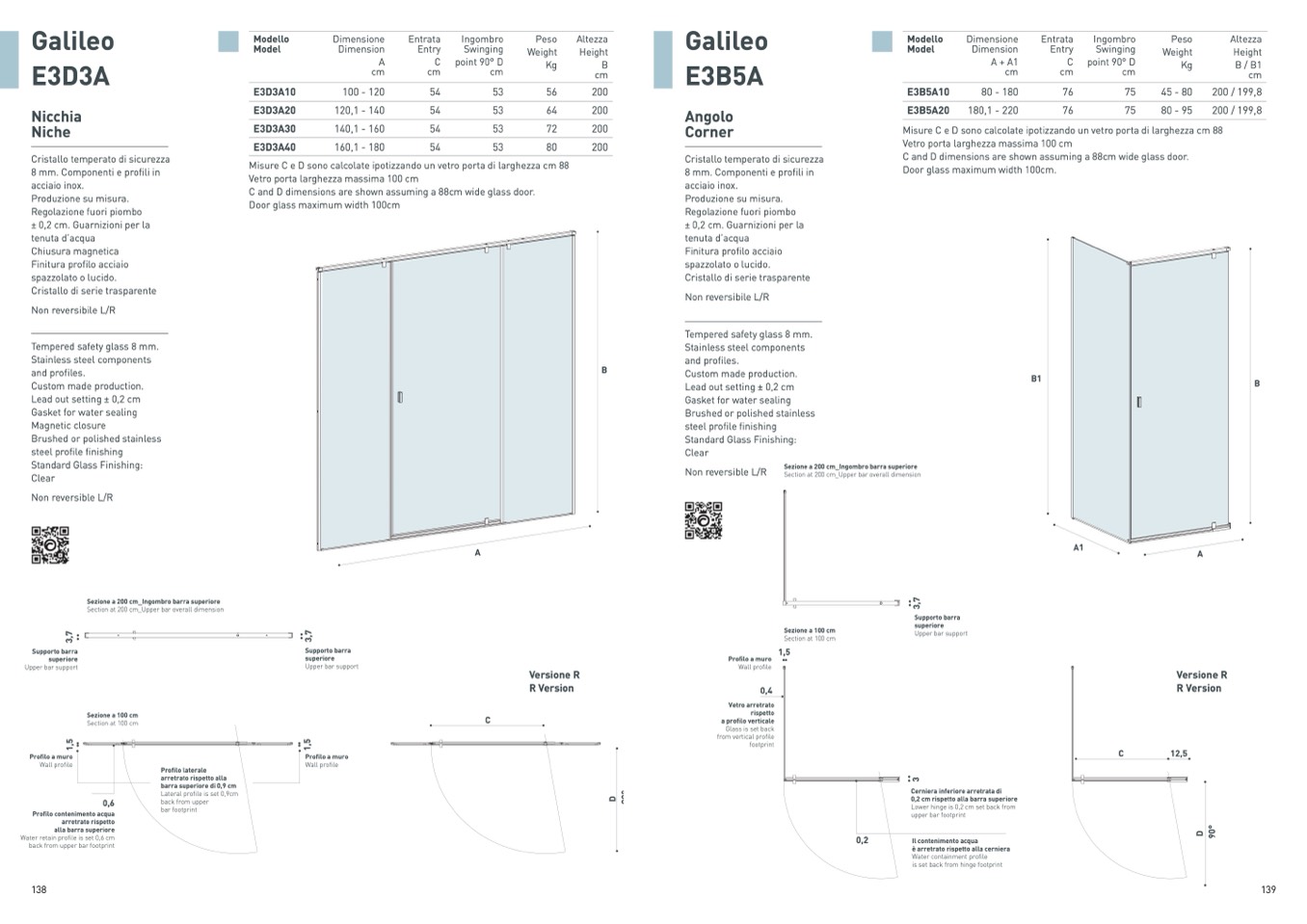 Misure C e D sono calcolate ipotizzando un vetro porta di larghezza cm 88