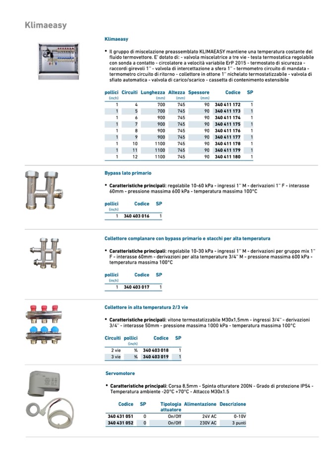 Caratteristiche principali: regolabile 10-30 kPa - ingressi 1'' M - derivazioni per gruppo mix 1''
