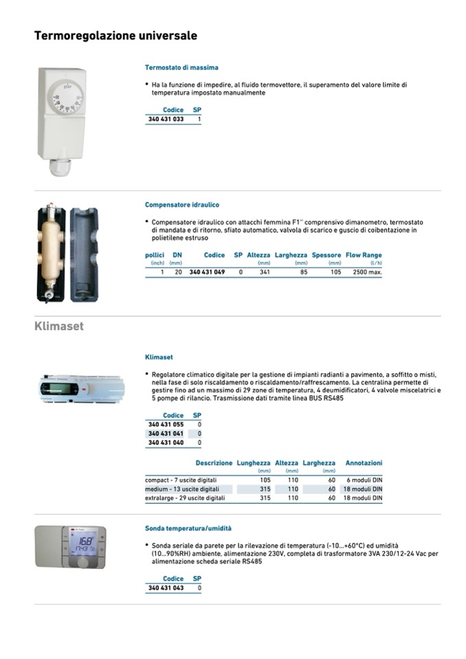 gestire fino ad un massimo di 29 zone di temperatura, 4 deumidificatori, 4 valvole miscelatrici e