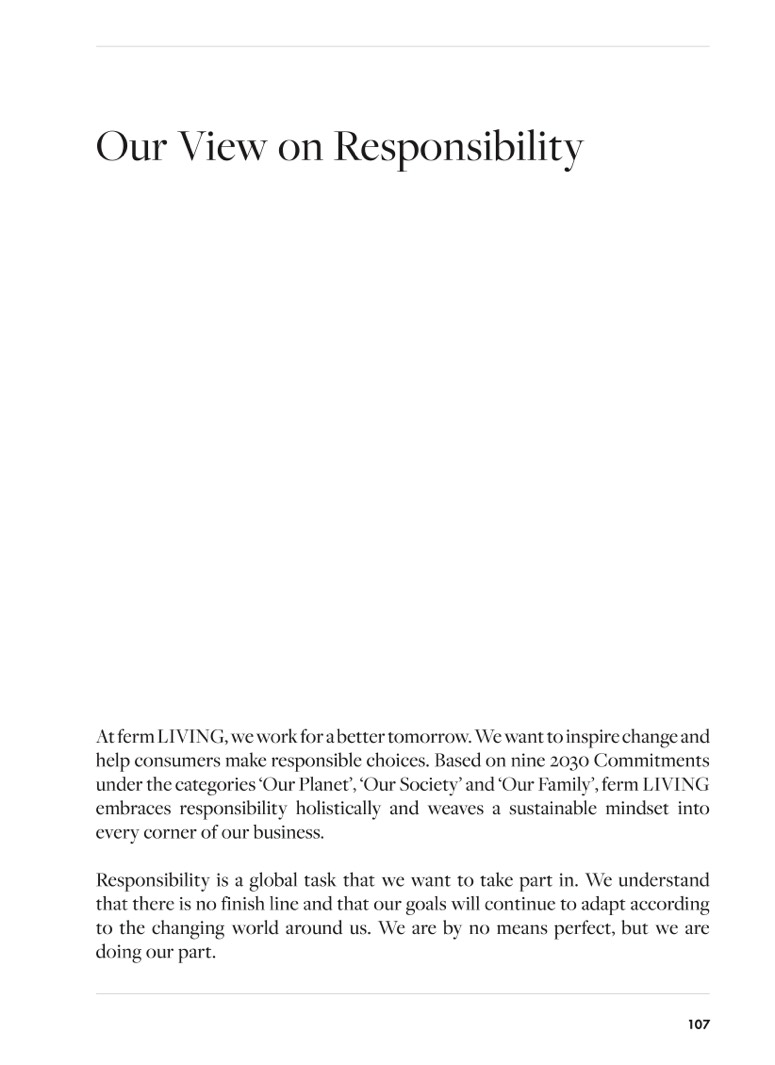under the categories ‘Our Planet’, ‘Our Society’ and ‘Our Family’, ferm LIVING