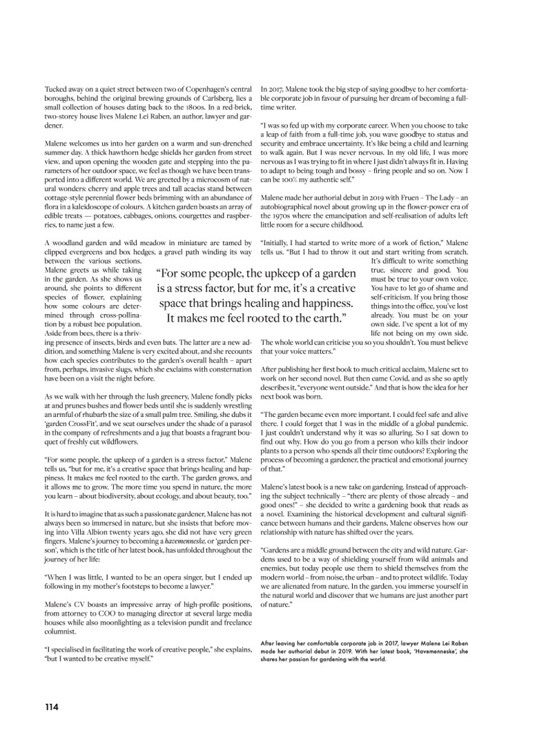 fingers. Malene’s journey to becoming a havemenneske, or ‘garden per-