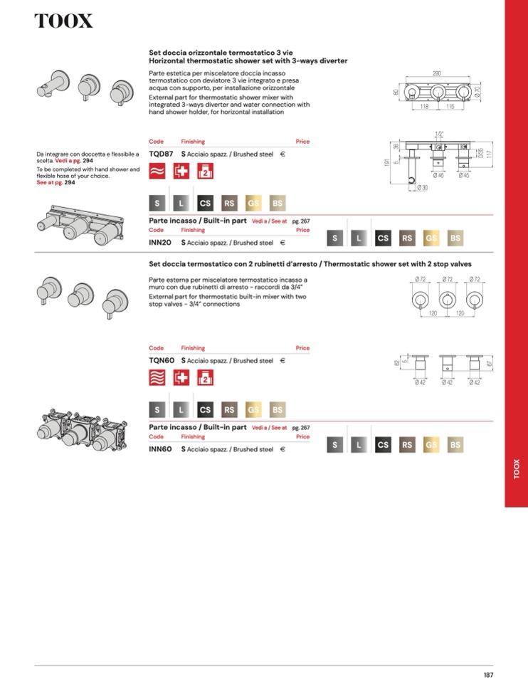 Set doccia termostatico con 2 rubinetti d’arresto / Thermostatic shower set with 2 stop valves