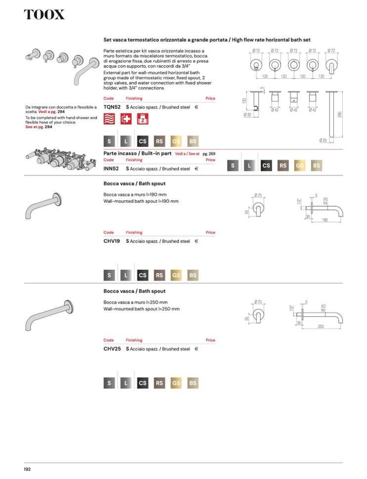 Set vasca termostatico orizzontale a grande portata / High flow rate horizontal bath set