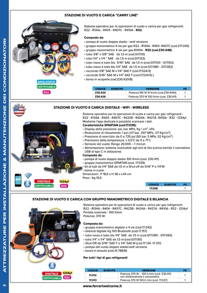 R22 - R134a - R404 - R407C - R410A - R32.