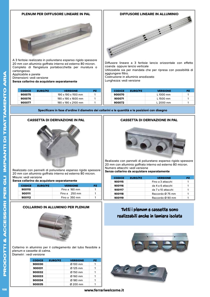 realizzabili anche in lamiera isolata