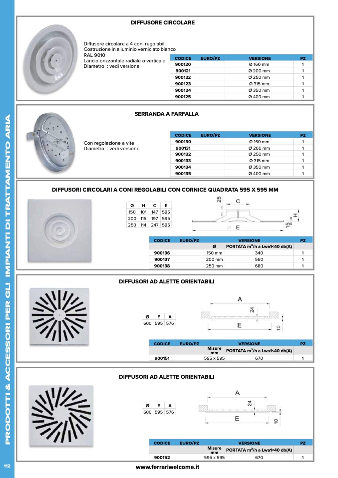 PORTATA m3/h a Lwa1<40 db(A)