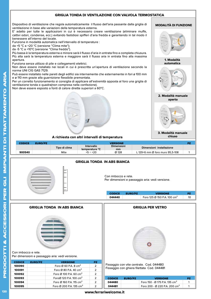 GRIGLIA TONDA DI VENTILAZIONE CON VALVOLA TERMOSTATICA