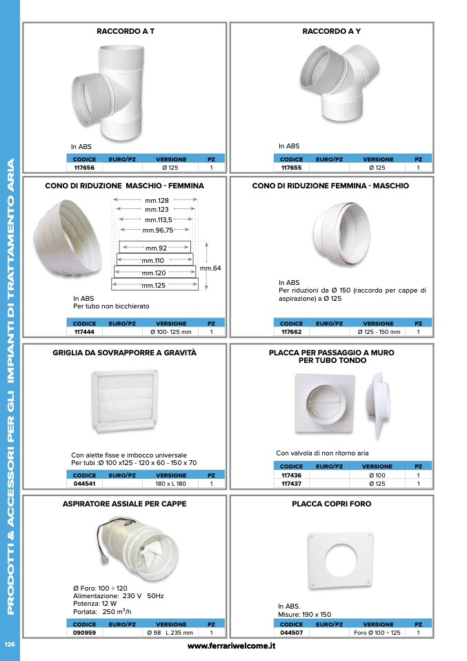 Per tubi :Ø 100 x125 - 120 x 60 - 150 x 70