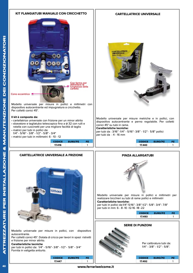 per tubi in pollici da: 1/4” - 5/16”- 3/8” - 1/2”- 5/8” - 3/4”