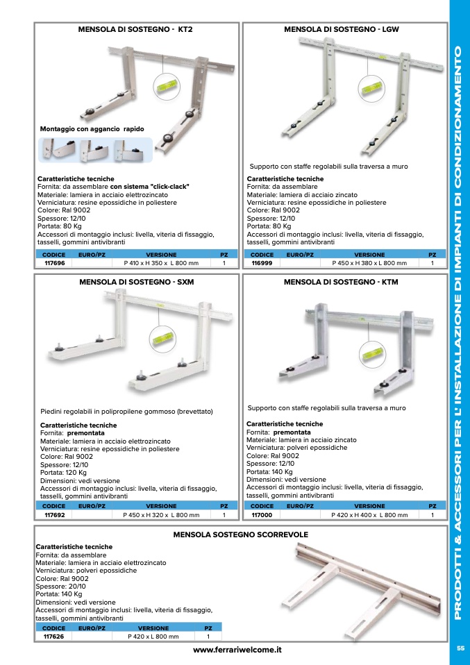 Accessori di montaggio inclusi: livella, viteria di fissaggio,