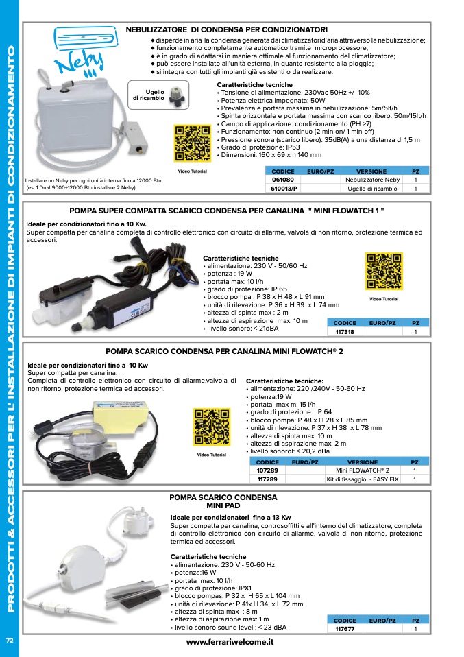 POMPA SUPER COMPATTA SCARICO CONDENSA PER CANALINA " MINI FLOWATCH 1 "