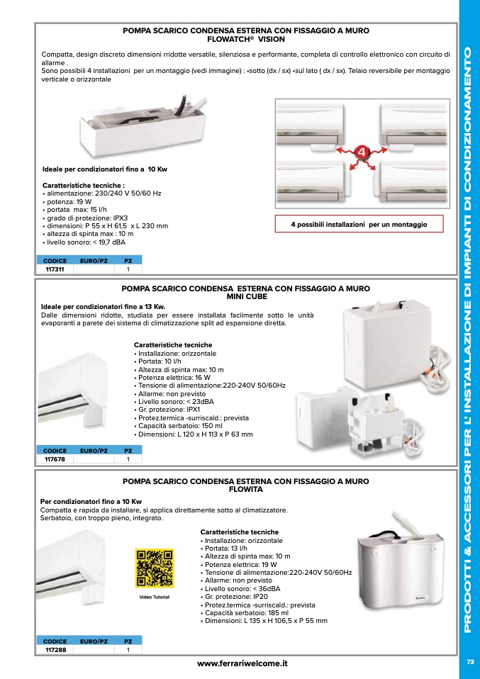 POMPA SCARICO CONDENSA ESTERNA CON FISSAGGIO A MURO
