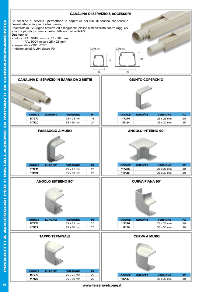 Realizzata in PVC rigido antiurto ed estinguente (classe 1) stabilizzato contro raggi UV