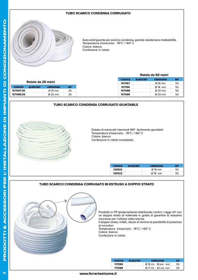 Auto-estinguente per scarico condensa, grande resistenza e malleabilità.