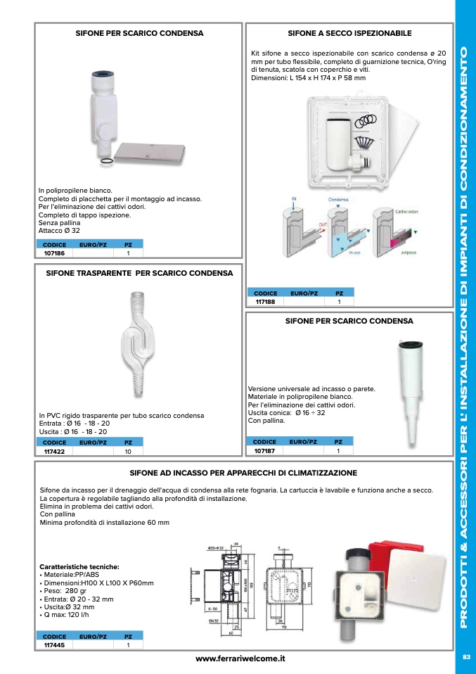 SIFONE AD INCASSO PER APPARECCHI DI CLIMATIZZAZIONE