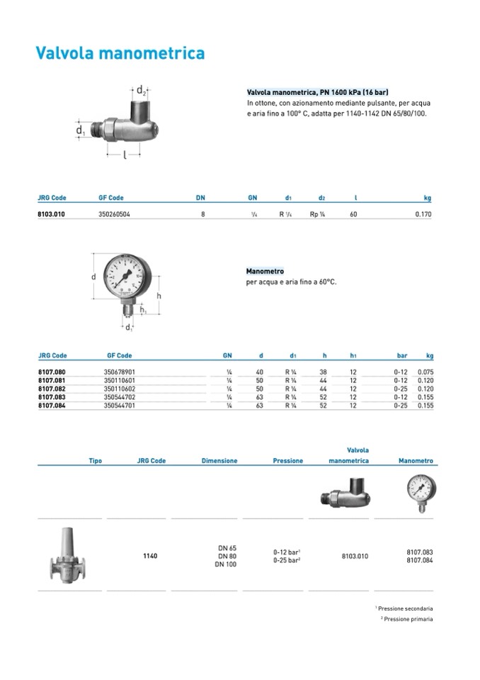 Valvola manometrica, PN 1600 kPa (16 bar)