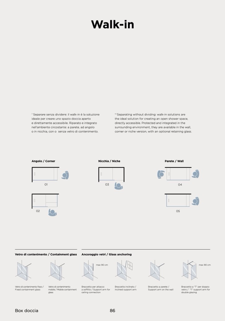 corner or niche version, with an optional retaining glass
