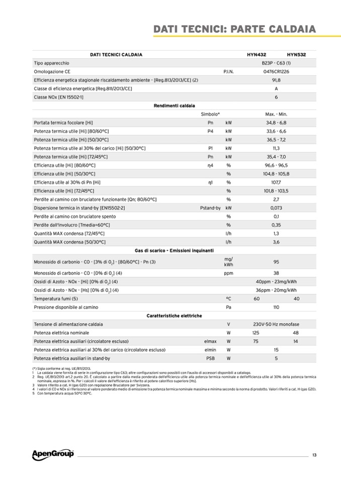 4 I valori di CO e NOx si riferiscono al valore ponderato medio di emissione tra potenza termica nominale massima e minima secondo la norma di prodotto. Valori riferiti a cat. H (gas G20).