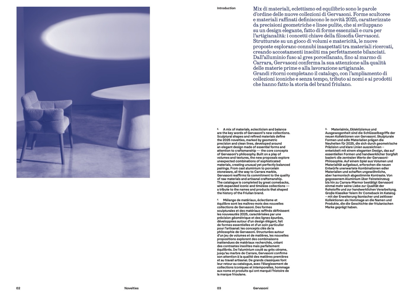 d’ordine delle nuove collezioni di Gervasoni. Forme scultoree