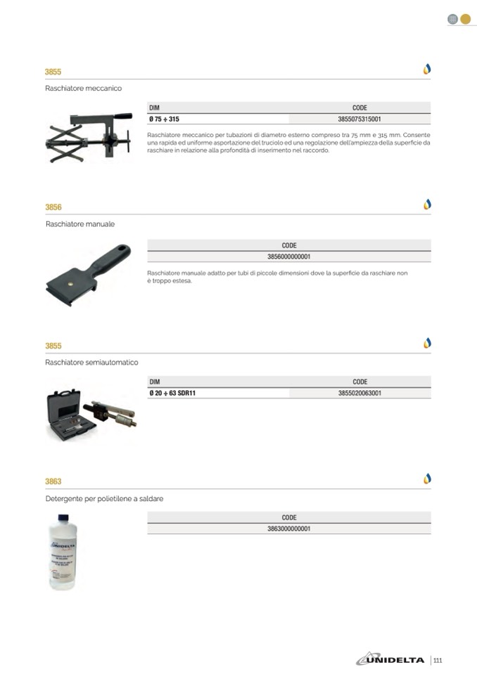 Raschiatore meccanico per tubazioni di diametro esterno compreso tra 75 mm e 315 mm. Consente