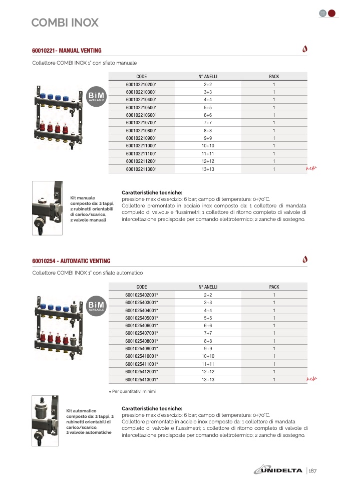 Collettore COMBI INOX 1” con sfi ato automatic