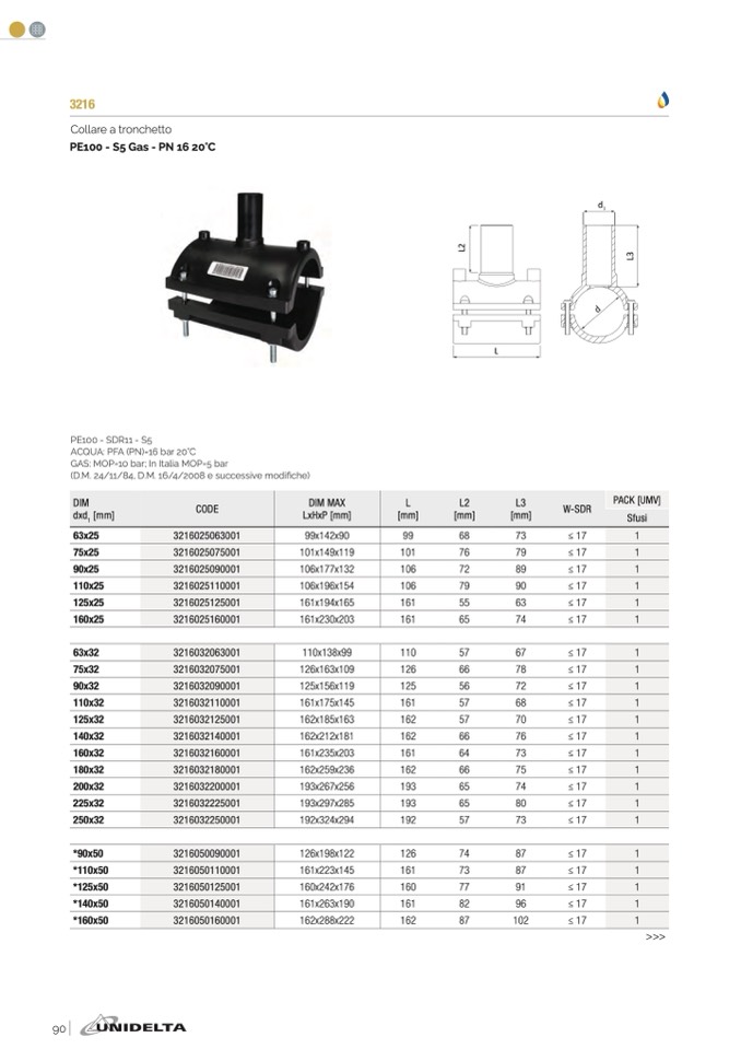 GAS: MOP=10 bar; In Italia MOP=5 bar
