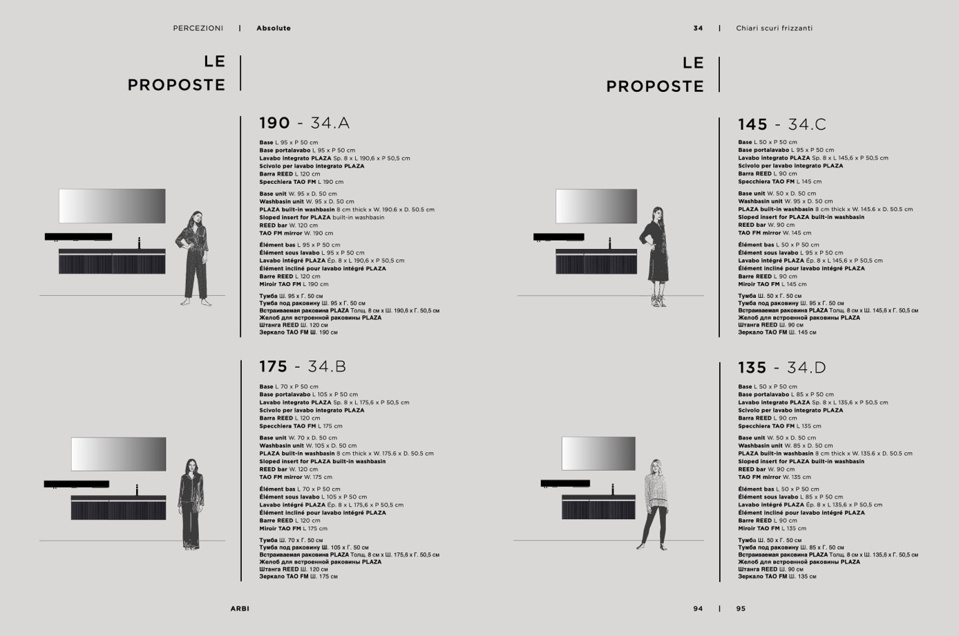 Washbasin unit W. 95 x D. 50 cm