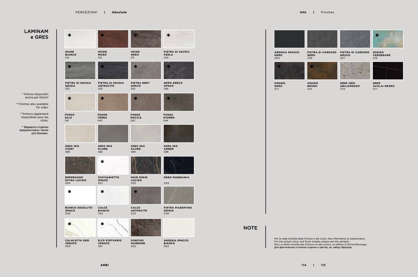 Per la reale tonalità delle finiture e dei colori, fare riferimento al campionario.