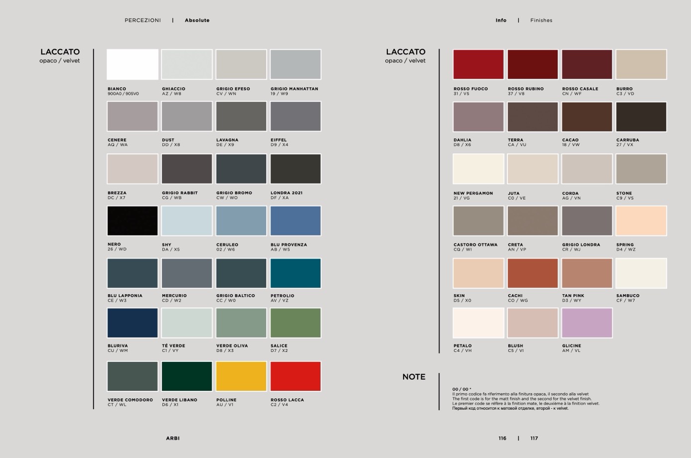 Il primo codice fa riferimento alla finitura opaca, il secondo alla velvet