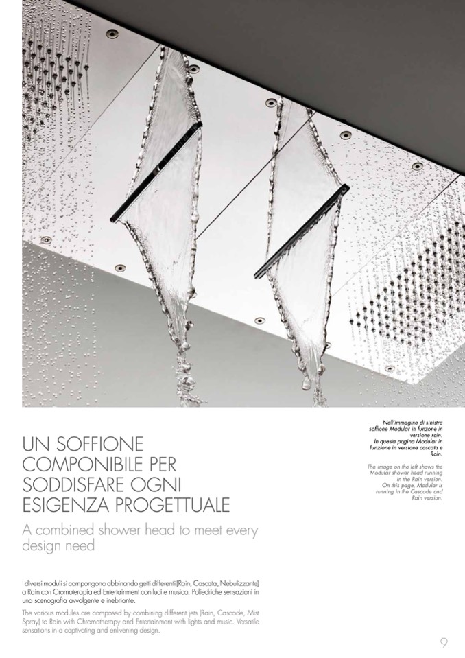 I diversi moduli si compongono abbinando getti differenti (Rain, Cascata, Nebulizzante)
