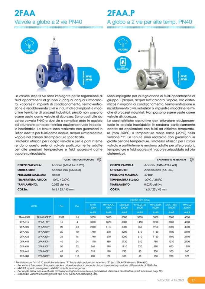 Le valvole serie 2FAA sono impiegate per la regolazione di