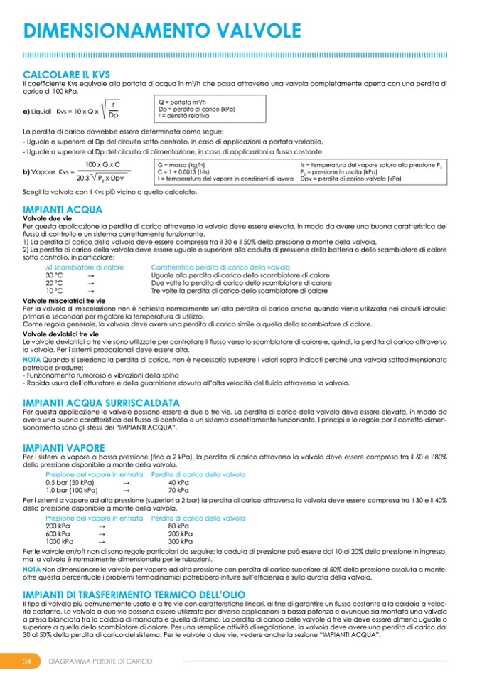 Per i sistemi a vapore ad alta pressione (superiori a 2 bar) la perdita di carico attraverso la valvola deve essere compresa tra il 30 e il 40%