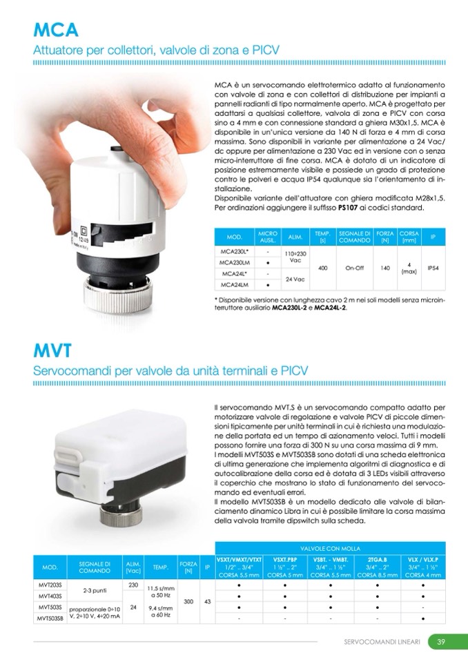 MCA è un servocomando elettrotermico adatto al funzionamento