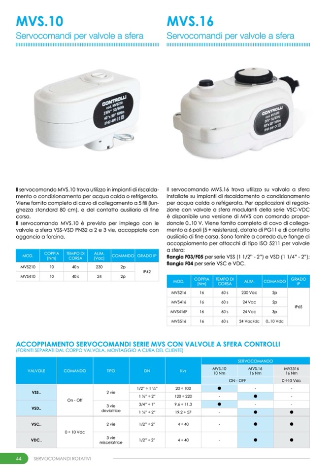ACCOPPIAMENTO SERVOCOMANDI SERIE MVS CON VALVOLE A SFERA CONTROLLI