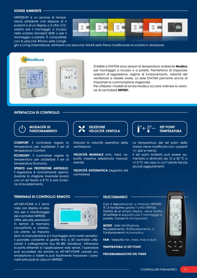 STA60M e STA70M sono sensori di temperatura ambiente Modbus