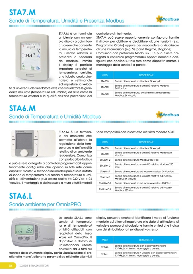Sonda di temperatura ad incasso Modbus 24 Vac/dc
