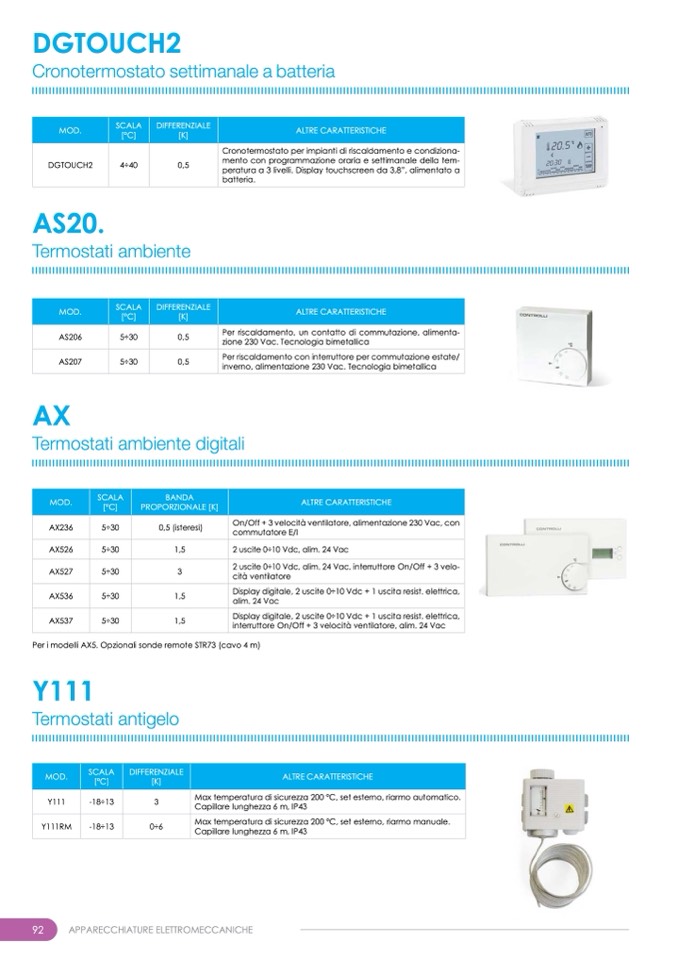 inverno, alimentazione 230 Vac. Tecnologia bimetallica