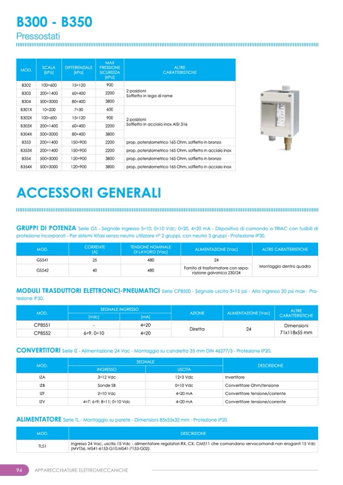 Serie CP8500 - Segnale uscita 3÷15 psi - Aria ingresso 20 psi max - Pro-