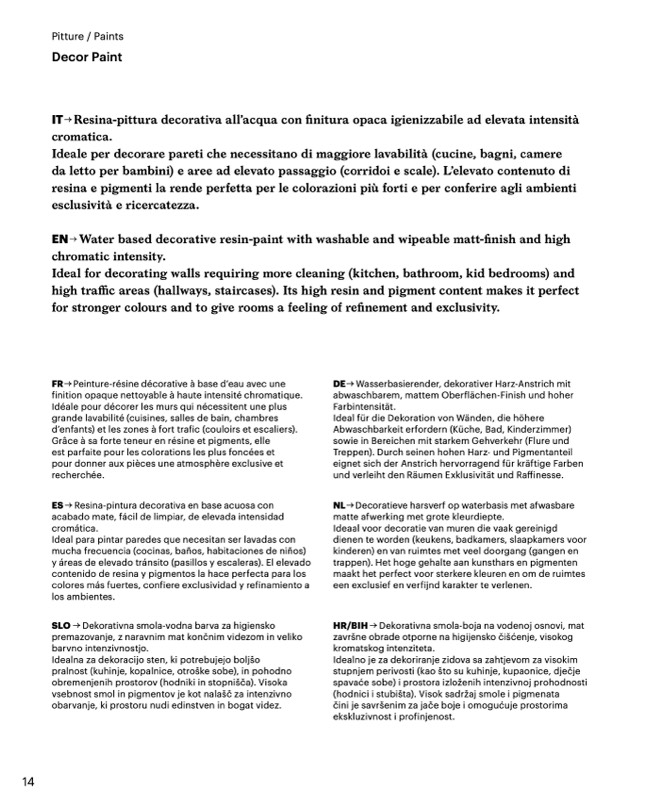 finition opaque nettoyable à haute intensité chromatique.