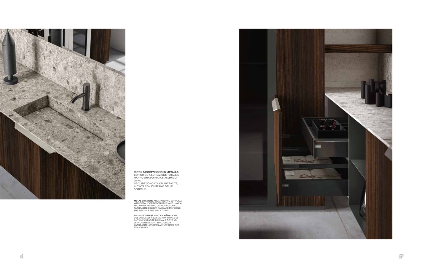 TOUS LES TIROIRS SONT EN MÉTAL, AVEC
