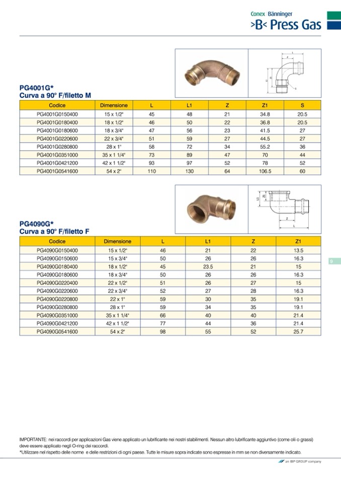 IMPORTANTE: nei raccordi per applicazioni Gas viene applicato un lubrificante nei nostri