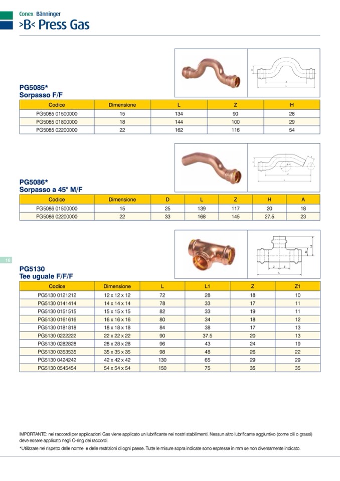 IMPORTANTE: nei raccordi per applicazioni Gas viene applicato un lubrificante nei nostri stabilimenti. Nessun altro lubrificante aggiuntivo (come olii o grassi)